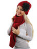 Стильный женский комплект бордового цвета, мягкая текстура и аккуратный дизайн, несомненно, Вам понравятся. Шапка с резинкой, дополнена объемным цветком, изделие плотно обтягивает голову, надежно защищая уши от ветра. Шарф простейшего дизайна, без лишних деталей, но это не мешает ему быть на высоте, шарф окутает Вашу шею теплотой и уютом.