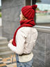 Теплый шерстяной комплект: шапка и шарф, выполнен в бордовом цвете узорной вязкой, шапка с помпоном, комплект отлично дополнит повседневный образ и согреет от непогоды.