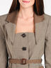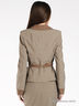 Детали: жакет с отложным воротником, застегивается на пуговицы, два кармана. Юбка с застежкой на молнию, высокая шлица