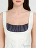 Комплект из плотного денима состоит из сарафана и болеро. Приталенный сарафан с застежкой на молнию сзади и шлицей, вырез дополнен вставкой. Болеро с коротким рукавом без застежки. Комплект декорирован оригинальным рисунком.