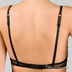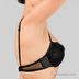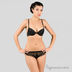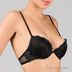 Привлекательный комплект нижнего белья благородного черного цвета. Бюстгальтер Push-upна косточках с градуированными чашечками придаст Вашей груди великолепную форму. Чашечки и их верхний обрез отделаны кружевом, боковинки выполнены из сатина и тонкой сеточки. Регулируемые бретели отделаны сатином спереди.Застежка выполнена из одного крючка и петли в три ряда и имеет мягкую подкладку по всей длине. Основной материал трусиков -бразилиана – изящное и эластичное кружево. Пояс и передняя часть трусиков отделаны сатином. Ластовица и чашечки имеют хлопковую подкладку.