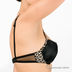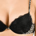 Привлекательный комплект нижнего белья благородного черного цвета с отделкой из сатина с принтом "леопард". Бюстгальтер Push-up на косточках с градуированными чашечками придаст Вашей груди великолепную форму. Чашечки и их верхний обрез отделаны кружевом, боковинки выполнены из сатина и тонкой сеточки. Регулируемые бретели отделаны сатином спереди.Застежка выполнена из одного крючка и петли в три ряда и имеет мягкую подкладку по всей длине. Основной материал трусиков -бразилиана – изящное и эластичное кружево. Пояс и передняя часть трусиков отделаны сатином. Ластовица и чашечки имеют хлопковую подкладку.