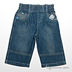 В комплект входят футболка, джинсовые брюки и кофта. Рукава и спинка футболки в трехцветную полоску. Внешняя сторона футболки в белую полоску и с принтом. Воротник белый. Футболка застегивается на три голубые пуговицы. Брюки с двумя карманами впереди. Сзади накладной карман. Швы отстрочены белой и салатовой нитками. Пояс резинка. Застежек нет. Кофта на молнии с капюшоном. Манжеты рукавов и низ кофты на резинке.