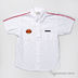 Рубашка классического кроя с нагрудным карманом застегивается на молнию. Декоративные элементы: полоски ткани на плечах, нашивка на полочке, крупная нашивка на спине.