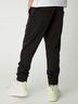 Черные трикотажные брюки с резинкой на поясе и манжетах - необходимый атрибут физкультурной формы. С белой футболкой брюки составят отличный комплект, мотивирующий на движение! Мягкое трикотажное полотно с эластаном создаст приятное прилегание к телу. Модная форма подарит комфорт и сделает образ ребенка стильным. Брендированнный хлопковый мешок, прилагающийся к брюкам, будет способствовать аккуратному хранению физкультурного комплекта дома и в школе.