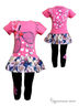 Комплект состоит из туники и лосин. Туника с коротким рукавом, украшена спереди принтом, бантиком и заклепками, сзади украшена принтом. Низ двухслойный: хлопковая подкладка с окантовкой сеточкой. Лосины на резинке, украшены принтом. Прекрасная практичная вещь для повседневного гардероба