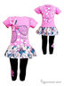 Комплект состоит из туники и лосин. Туника с коротким рукавом, украшена спереди принтом, бантиком и заклепками, сзади украшена принтом. Низ двухслойный: хлопковая подкладка с окантовкой сеточкой. Лосины на резинке, украшены принтом. Прекрасная практичная вещь для повседневного гардероба