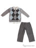 Замечательный комплект одежды, состоящий из свитера, рубашки и брюк. Свитер украшен фактурным рисунком. Рубашка с отложным воротником и застежкой на кнопочки. Брючки прямого кроя на эластичном поясе. Выполненный в стильном дизайне, придется по нраву маленькому джентльмену.