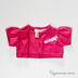 В комплект входит болеро, сарафан и трусики. Сарафан на тонких бретелях, А- силуэта. Застегивается сзади на пуговицы. Болеро из плотного трикотажа.
