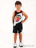 Шорты прямого кроя с карманами декорированы контрастными вставками.