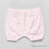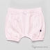 Шорты прямого кроя посажены на манжеты. В пояс вшита резинка. К поясу пришит декоративный бантик. Брючина украшена аппликацией.