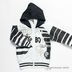 Ветровка прямого кроя с воротом-стойкой и отстегивающимся капюшоном. Манжеты и низ изделия - трикотажные резинки. Изделие украшено аппликациями и нашивками. Хлопковый подклад.