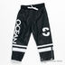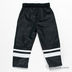 Брюки прямого кроя. В пояс вставлена резинка и регулирующий шнурок. Два передних кармана. Снизу по внешним боковым швам вшиты молнии. Изделие украшено аппликациями.