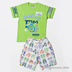 Комплект состоит из футболки и цветных шорт. Футболка украшена принтом и аппликацией.