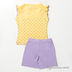 Веселый летний комплект для девочки. Рукавчики футболки имеют декоративную сборку на резинку. На полочке задорный принт.