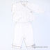 кофта на кнопках, в мелкий рисунок, украшенная рюшками. штаны прямые, украшенные по низу кружевами и бантиками.
