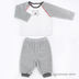 Джемпер с застежкой на спине, на кнопках, украшенный аппликацией и штаны на резинке с манжетами.