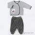 Джемпер на кнопках, украшенный аппликацией и штаны на резинке с манжетами.