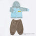 Курточка с цельным капюшоном на кнопках и штаны на резинке, с манжетами.
