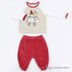 Джемпер с застежкой на спине, на кнопках, украшенный аппликацией и малиновые штаны на резинке и манжетах.