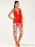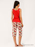 Изящный комплект из комфортного качественного материала. Яркий топ с фигурным вырезом горловины, широкими бретелями декорирован бантиком и стразами. Свободные бриджи из вискозного материала с цветочным принтом, пояс на резинке декорирован бантиком.