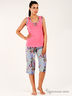 Красивый уютный комплект из качественного материала. Топ на широких бретелях с округлым вырезом горловины, декорированным оборкой, снизу принт из страз сердечко. Свободные бриджи из вискозного материла с поясом на резинке декорированы бантиком. Для тех, кто ценит красоту и комфорт!