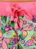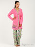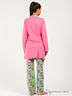 Отличный комплект состоит из четырех изделий. Легкий халат с длинными рукавами, стильный топ с застежкой на пуговицы декорирован бантом, брюки и короткие шорты с отрезным поясом-резинкой на кулиске. Комфортный гипоаллергенный хлопковый материал порадует Вас своей практичностью в носке, а стильный принт делает комплект потрясающе красивым.