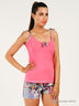 Стильный уютный комплект из комфортного качественного материала. Топ с вырезом лодочка горловины с бантиком, тонкими завязками и небольшим принтом сердечко из страз. Короткие шортики из приятного на ощупь вискозного материла с отрезным поясом-резинкой декорированы бантиком.