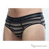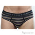 Трусы слипы из слегка эластичной хлопковой ткани классического кроя. Сверху посажены на широкую резинку. Декорированы оригинальным принтом-полоска и контрастными вставками.