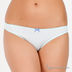Эластичные трусы-бикини из приятной на ощупь трикотажной ткани. Пояс и проймы на резинках. Хлопковая ластовица. Передняя часть изделия декорирована атласным бантиком.