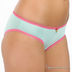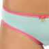 Комплект состоит из двух трусиков слипов. Трусики выполнены из эластичной трикотажной ткани, резинки на пройме и талии контрастного цвета, ластовица на хлопковой подкладке. Декорированы оригинальной аппликацией.