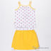 Детали: майка - тонкие бретели; оригинальный принт; на полочке нашивки; юбка - посажена на резинку; два втачных кармана; декоративный бант