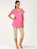 Стильный уютный комплект из комфортного хлопкового материала. Туника с вырезом лодочка горловины, нижние боковые части присборены на резинку, печатный принт на полочке. Свободные бриджи с поясом на резинке и цветочным принтом.