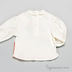Футболка прямого кроя с длинным рукавом застегивается на три пуговицы на спинке. Небольшой ворот-стойка. Декоративная вышивка на полочке. Контрастная вставка.