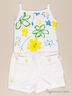 Очаровательный комплект состоит из двух предметов: топ и шортики. Топ с короткими рукавами и округлым вырезом горловины. Спереди модель декорирована контрастным принтом. Шортики выполнены из натурального материала привлекательной расцветки. Отличный вариант на каждый день.