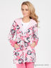 Детали: футболка с коротким рукавом-фонариком и округлым вырезом горловины, кардиган с капюшоном, длинный рукав, два кармана, в шлевки продет пояс, брюки на резинке