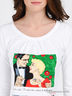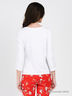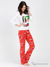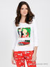 Оригинальный комплект прилегающего силуэта выполнен из тонкого эластичного, хлопкового трикотажа. Лонгслив с округлым вырезом горловины и с длинным прямым рукавом. Полочка присборена у горловины в небольшие складки. Брюки с отрезным поясом на атласной ленте. В комплекте ажурные трусики-стринги. Забавный и веселый наряд для отдыха дома!