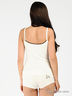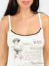 Облегающая майка на тонких лямках украшена аппликациями на полочке.