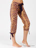 Бриджи прямого силуэта. В пояс и низ брючин вставлены регулирующие ленты, завязывающиеся в бантики.