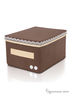 Средняя коробка для хранения "Chocolate Cake" с крышкой удобна для хранения легких вещей, брюк, сложенных рулонами, легкой несезонной обуви, аксессуаров для волос, бижутерии, старых фотографий, слайдов, средств по уходу за волосами, детских памперсов, чистящих средств в ванной, туалетной бумаги... Крышка надежно защитит Ваши вещи от пыли и загрязнений. Коробку для хранения можно хранить как в шкафу, так и на открытых полках. Коробка для хранения выполнена из материала шоколадного оттенка. Стенки коробки для хранения жесткие, в качестве вставок используется пластик. Размер: 20х25х15 см.