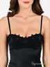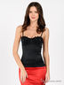 Детали: тонкие, регулируемые по длине бретели, формованный лиф с плотными чашечками декорирован кружевом, низ изделия декорирован стразами.
