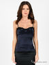 Детали: тонкие, регулируемые по длине бретели, формованный лиф с плотными чашечками декорирован кружевом, низ изделия декорирован стразами.