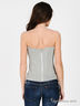 Оригинальный корсет из плотной хлопковой ткани подойдет как к повседневному гардеробу, так и для вечеринок. Застегивается на молнию на спине. По бокам и на спине корсет усилен поддерживающими косточками. Низ изделия на трикотажной резинке в мелкий рубчик.