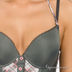 Корсет женский. Корсет на косточках с бесшовными чашечками. Гелевый уплотнитель для эффекта push-up. Застегивается сзади на крючки. Изготовлен из приятного на ощупь эластичного материала. Подкладка - сетка стрейч. Съемные завязки на шее в тон декоративным вставкам. Спереди планка с пуговицами.