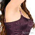 Элегантный топ на бретелях корсетного типа выполнен из атласного материала с оригинальным принтом. Лиф топа с Т-образными швами имеет тонкую, но плотную поролоновую прокладку. Такая конструкция лифа приподнимает и поддерживает грудь. Топ имеет несколько вставок, корректирующих область талии: 4 жесткие спереди, 2 плотные по бокам и 2 жесткие сзади. Застегивается топ сзади на 15 крючков, расположенных в три ряда. Такая застежка обеспечивает подбор идеальной посадки. По всей длине застежки имеется мягкая подкладка. Задняя часть топа выполнена из эластичной сеточки оригинального плетения, расшитой тонкими атласными нитями. Бретели, выполненные из рельефной присборенной резинки, декорированы спереди металлическими вставками со стразами и регулируются по длине.