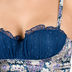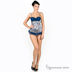 Корсет из атласного полотна с цветочным орнаментом. Уплотненные чашечки, низ изделия дополнен оборками.