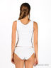 Корсет, напоминающий по фасону блузку с очень глубоким вырезом. Задняя часть уплотнена дополнительными слоями трикотажа. В модель вшиты металлические косточки, благодаря которым моделируется фигура. Передняя часть сильно вырезана, чтобы не сплющивать грудь. Кроме основной функции, корректировки линии талии, модель выравнивает осанку.