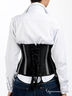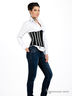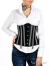 Корсет с полосатой черно-белой тесьмой по рельефам.