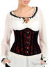 Корсет с полосатой черно-белой тесьмой по рельефам.