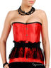 Корсет с вытачками и имитацией пояса по линии талии, с кружевом, переходящим в имитированный шлейф и узким кружевом по линии верха корсета.
